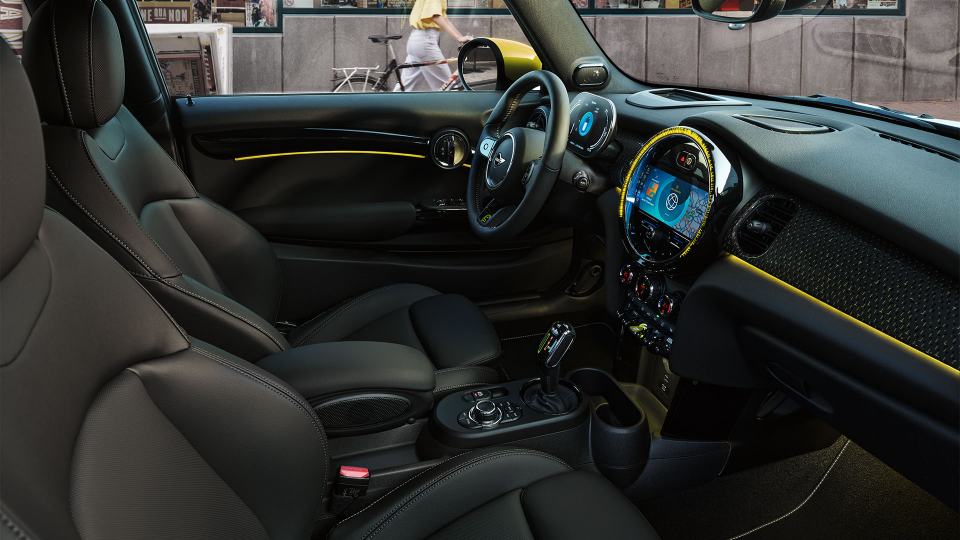 Diversas cores iluminam o interior do MINI elétrico: amarelo, roxo, azul, verde e você pode escolher o tom de acordo com o mood do dia, deixando o ambiente ainda mais aconchegante.