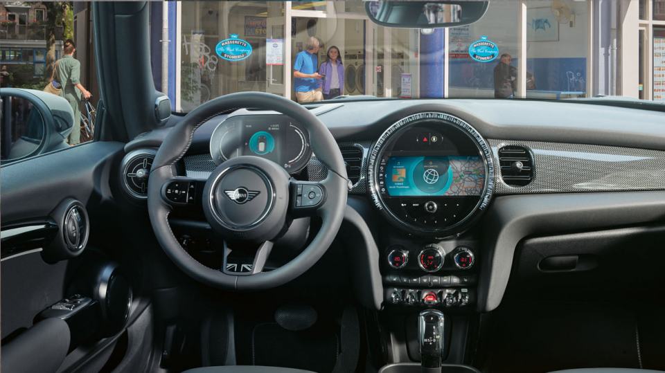 Construído especialmente para o MINI totalmente elétrico, esse painel consiste em uma tela colorida de 5" em formato autêntico, em um elegante painel preto e fornece detalhes como nível de bateria, autonomia, velocidade, quilometragem, temperatura. Tão conveniente quanto eletrizante.
